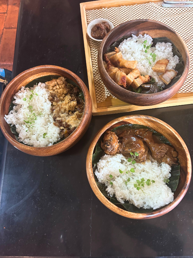観光のあとは、近くのカフェでフィリピン料理を楽しみました。ご飯とおかずがのったボウルスタイルの料理で、とても美味しかったです!